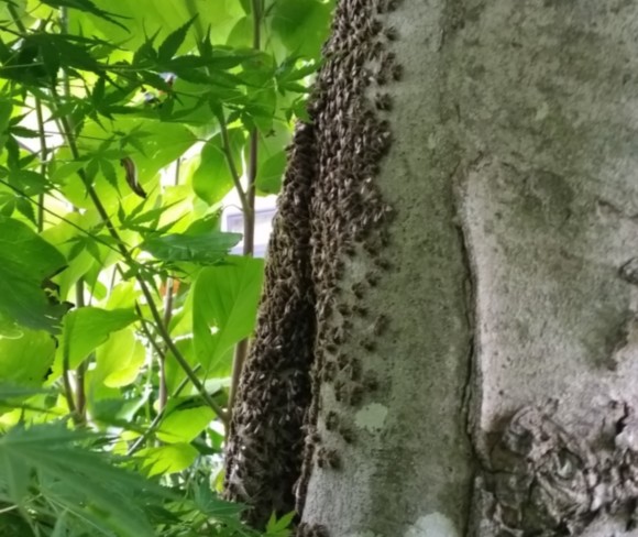 日本ミツバチの群れが訪れました